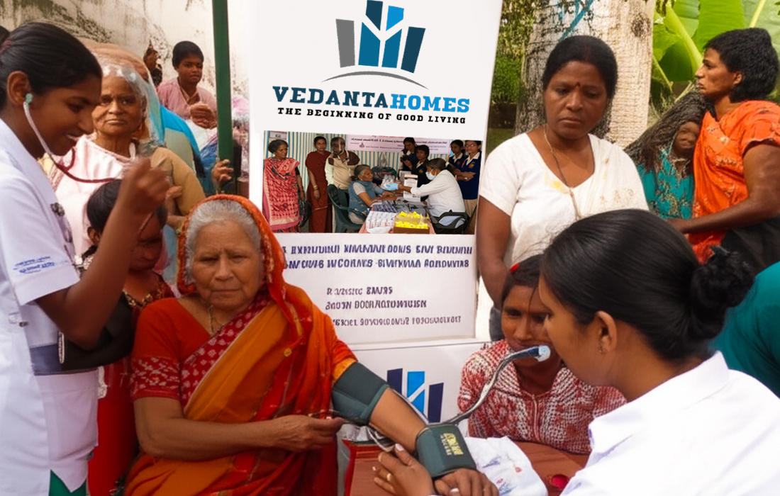 Vedanta Homes recently conducted a Free Health and Eye Checkup Camp for construction workers and nearby villagers. The camp offered general health screenings, eye examinations, and free distribution of spectacles and essential medicines. A team of certified doctors and volunteers ensured thorough consultation and follow-up advice. Over 300 individuals benefited from this initiative. This program reinforced our belief that health is a right, not a privilege, and no one should be left behind in accessing basic medical support. ..